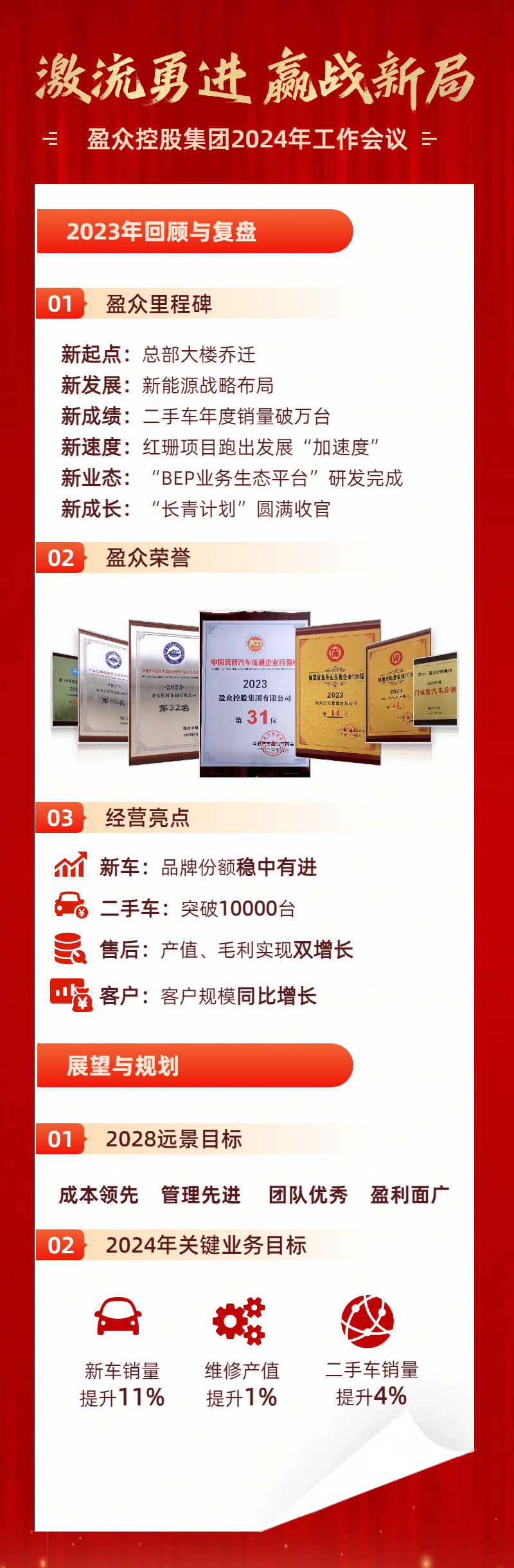 2023年回顧與復(fù)盤、展望與規(guī)劃、要求與期望三部分切入總結(jié)集團(tuán)2023年各項(xiàng)工作的發(fā)展,部署2024年及未來5年工作重點(diǎn)。